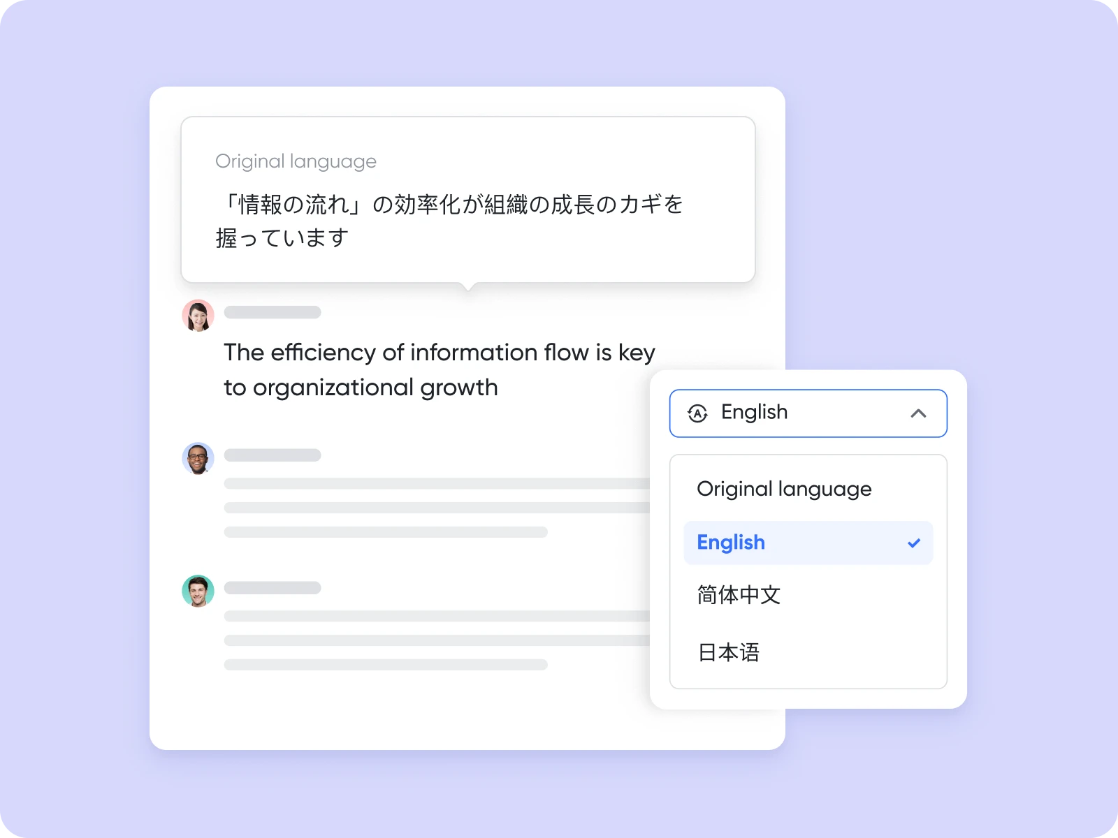 With one click, meeting minutes can be translated from one language to another, facilitating communication for global teams.