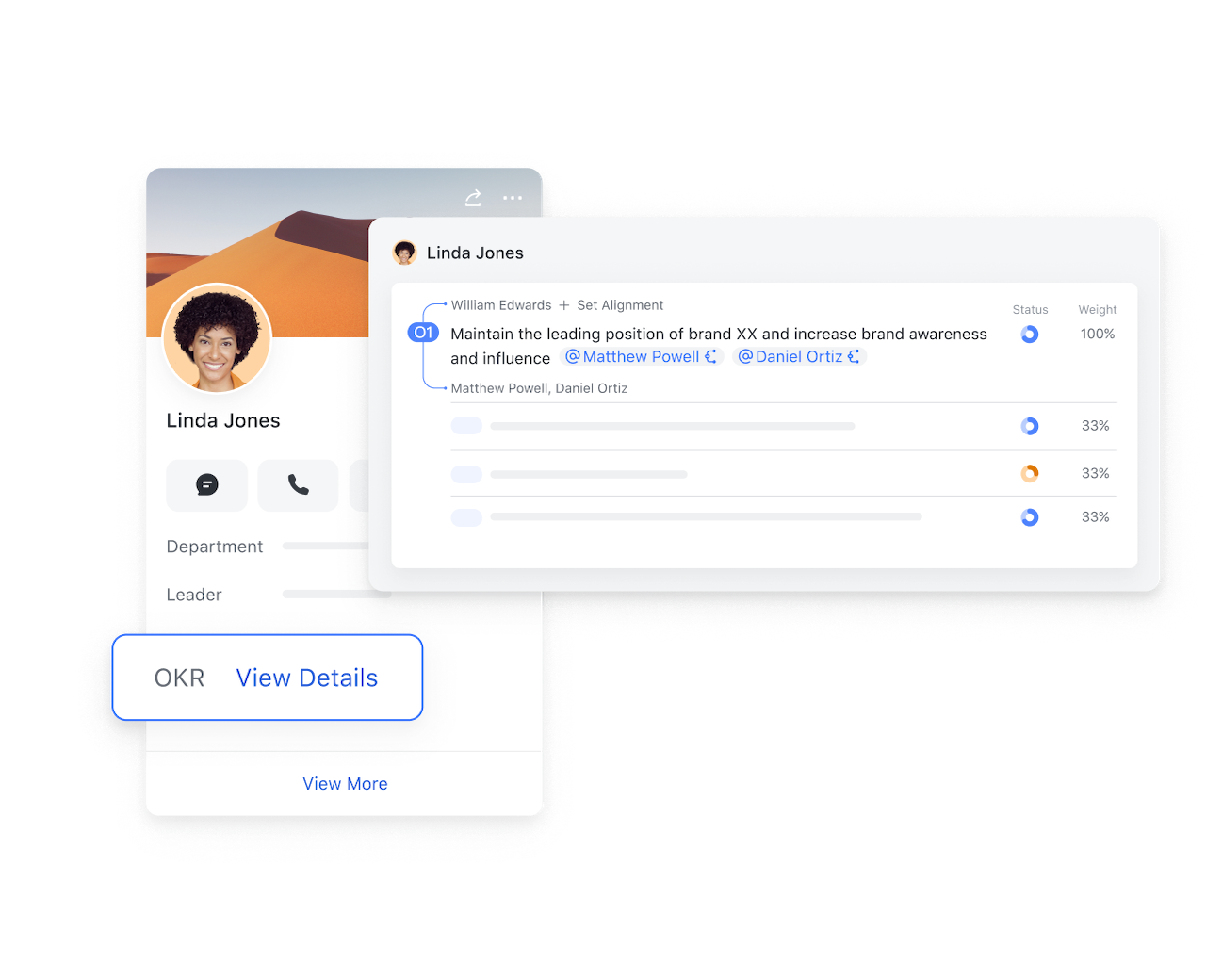 Everyone's OKRs are available in their Lark Profile, enabling a transparent culture and providing more context for cross-team collaboration.