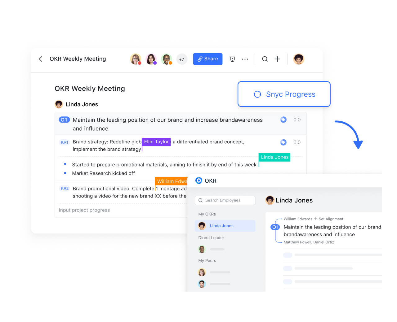 Insert OKR in any Lark Doc, update OKR progress collectively and seamlessly sync back to the OKR system.